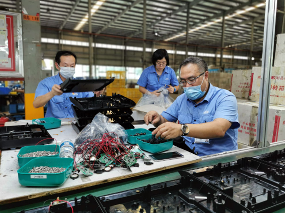 這是黨員干部專線自今年3月設立以來首次生產計價秤,作業要求比以往生產的廚房秤高,大家無不耐心細致地做好每道工序,熱得汗流浹背,也沒有絲毫懈怠,力求達到作業標準,奮力完成既定目標。