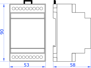 • 2 個 photomosfet 輸出:150 mA 48 Vac / 150 mA 60 Vdc (NO),具有可配置功能(DGT1IO 型號)。